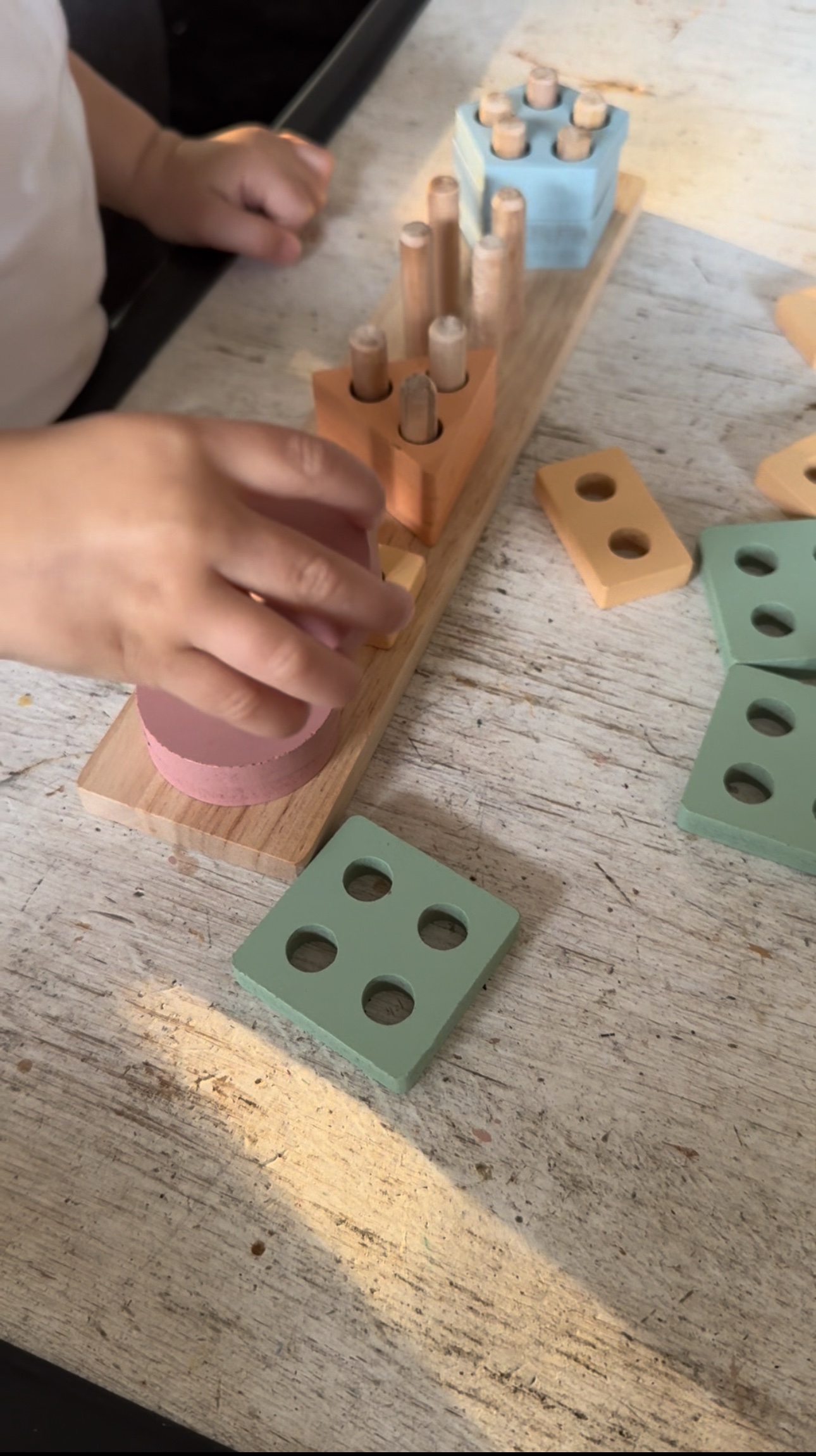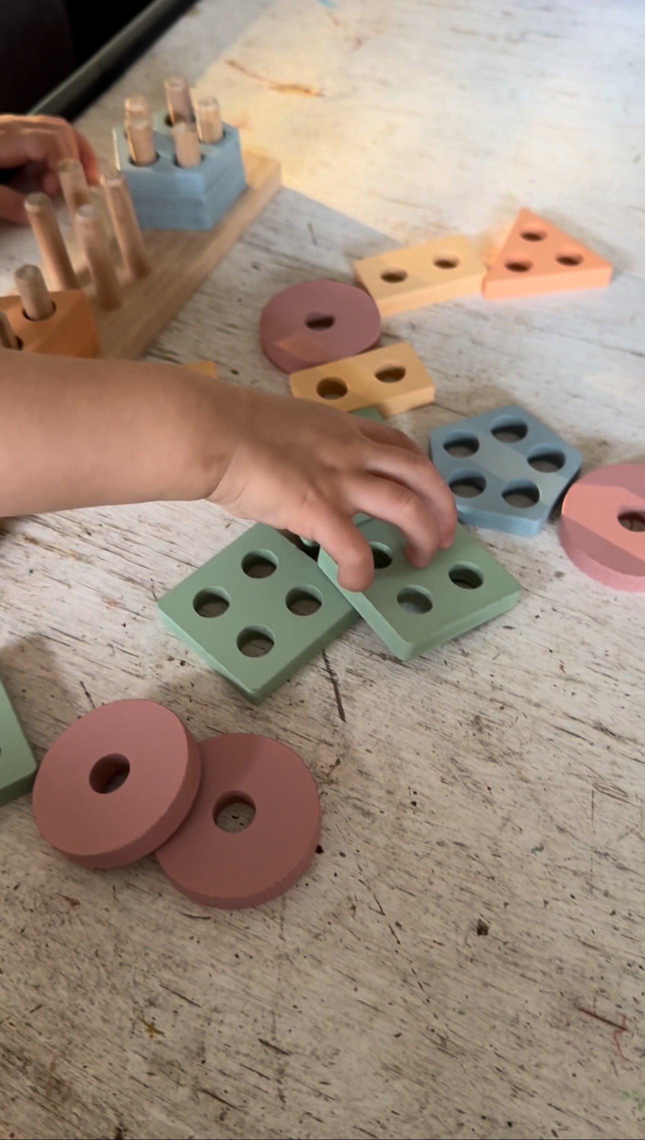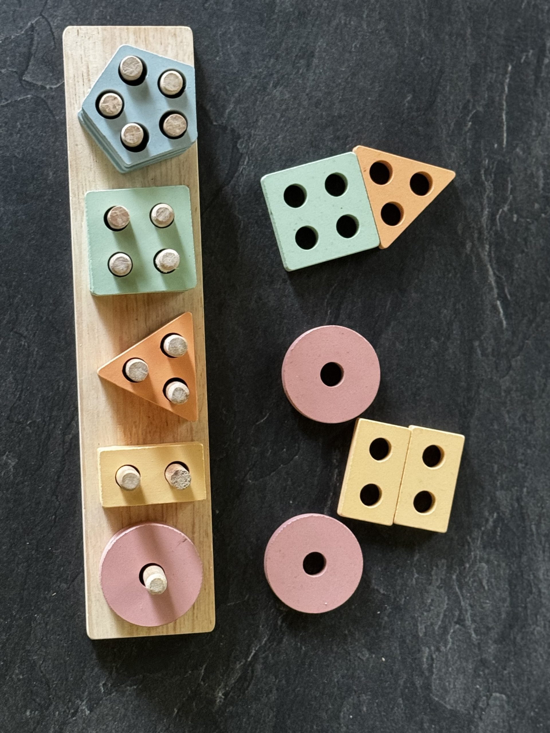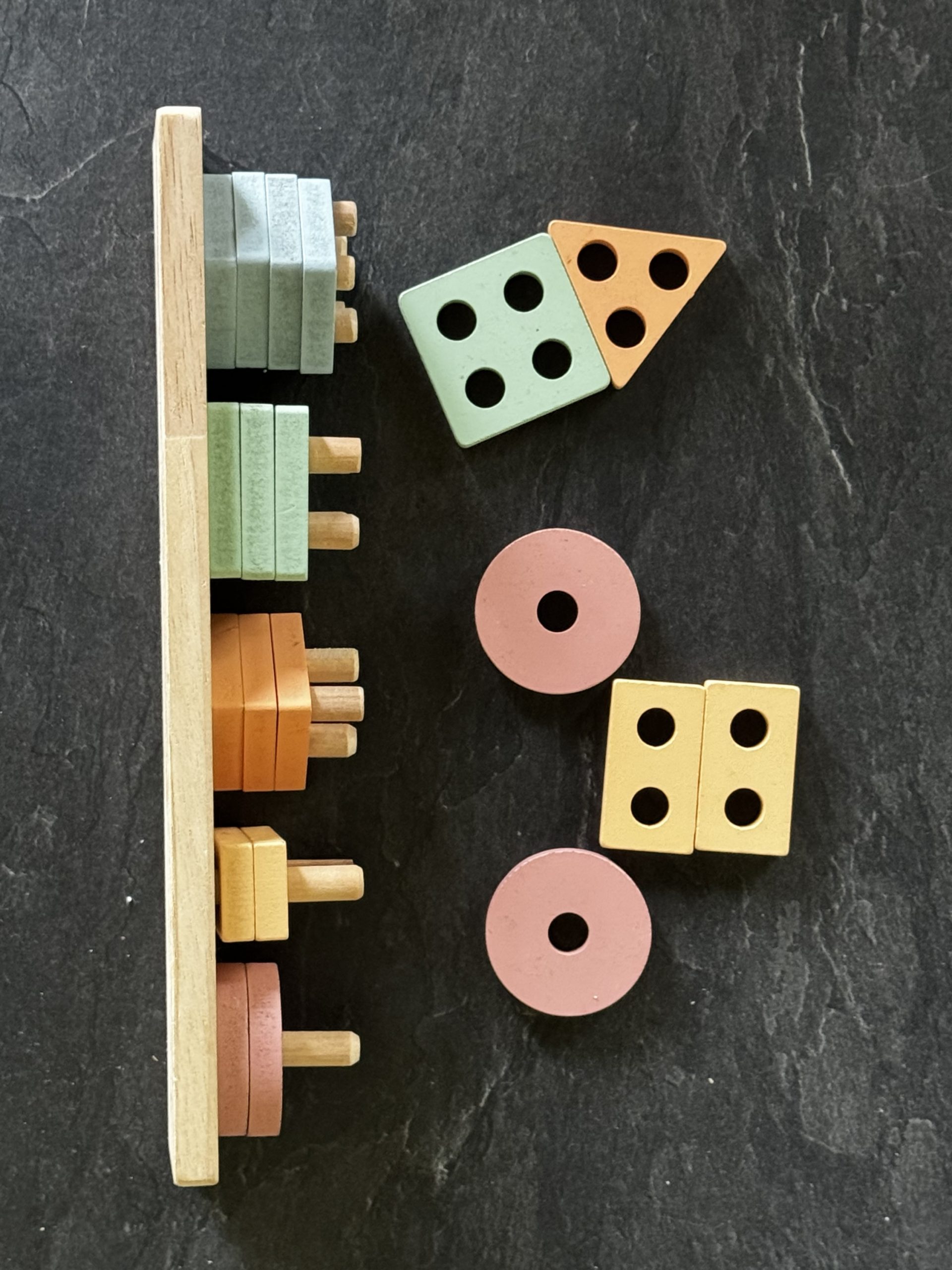 Die Teile sind extra groß, sodass sie von kleinen Fingern gut gegriffen werden können – das macht es für unsere Tochter besonders einfach, mit den Formen zu spielen, sie zu stapeln und zu sortieren.