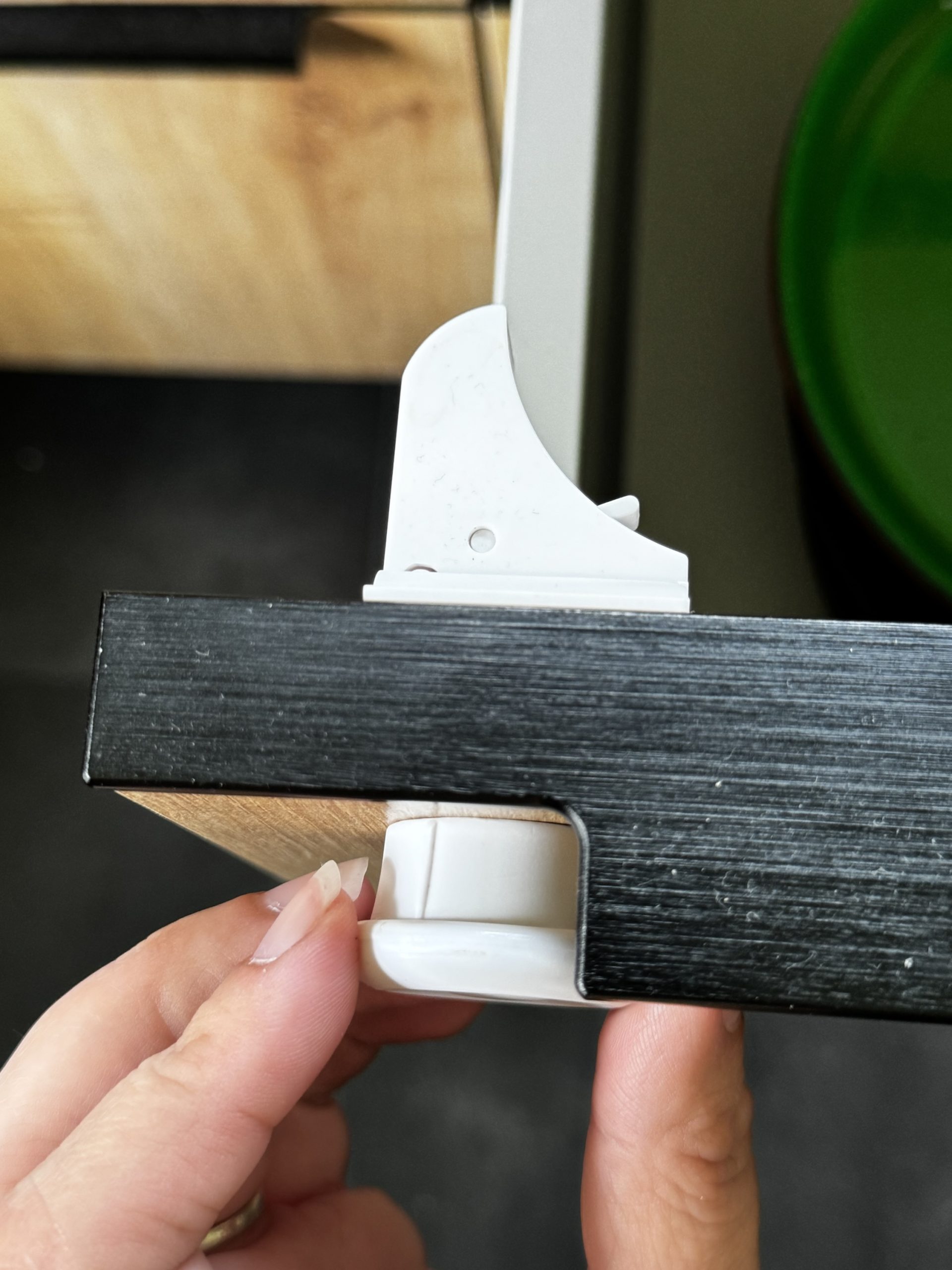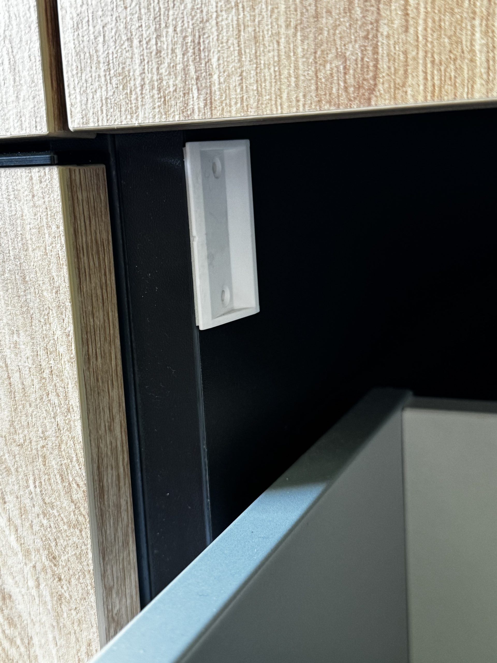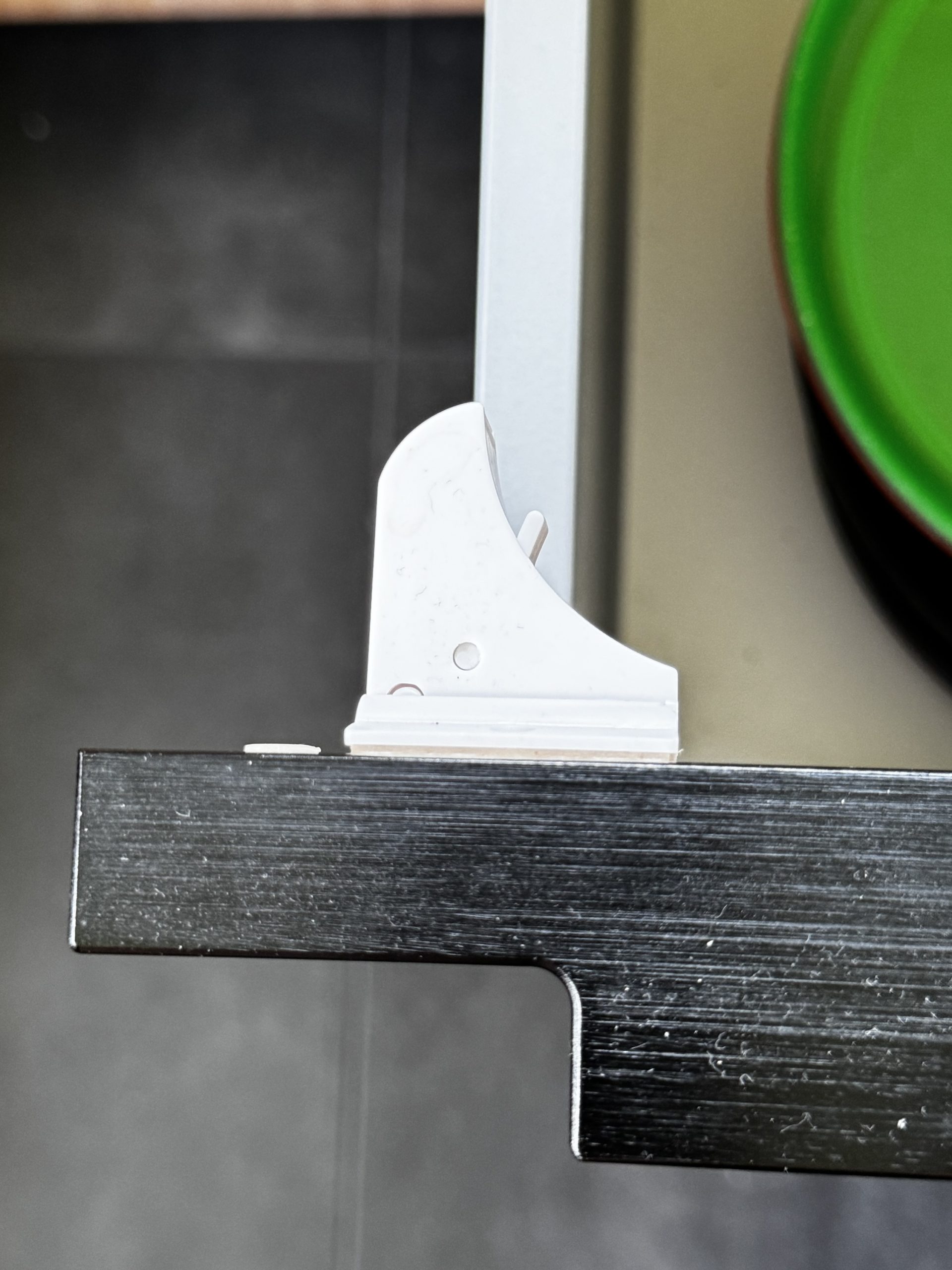 Die Funktion, die Schränke bei Bedarf zu entsperren, ist ebenfalls sehr praktisch. Man kann den kleinen Schalter einfach umlegen, um den Schrank offen zu halten, was besonders nützlich ist, wenn die Kleine mal nicht in der Nähe ist. Fun Fact: Auch das hat unsere kleine mittlerweile raus, aber wenn die Schublade dann einmal zu ist, bekommt sie sie (zumindest aktuell) auch mit dem Magneten nicht auf.